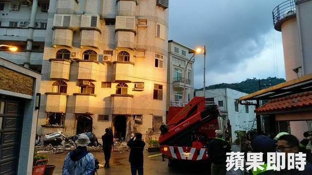 ▲花蓮地震使當地的統帥大飯店和雲門翠堤大樓嚴重坍塌。
